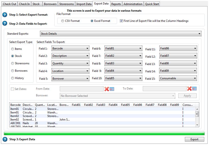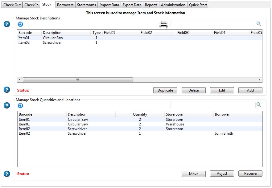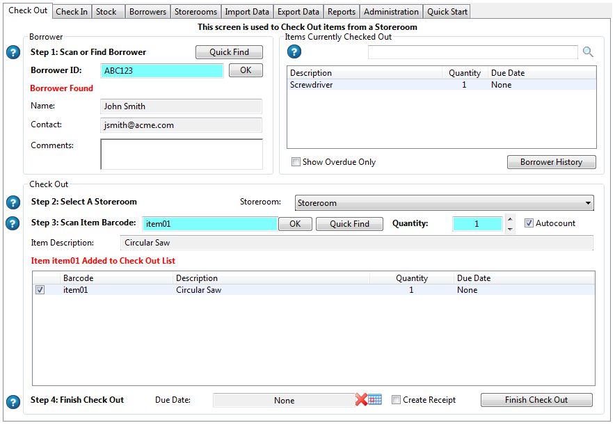 Our software guides you through the process of setting up Borrowers, Storerooms and Items.